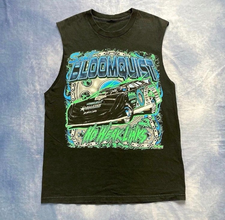 史上最高のダート・レイト・モデルドライバー「スコット・ブルームクイスト」の大判両面プリントのカットオフノースリーブTシャツが入荷。タグはありませんが、肉厚な生地感、グラフィック、サイズ感共に良い感じ。ベスト感覚で着用できそう。使い方次第でかなら使えると思います。